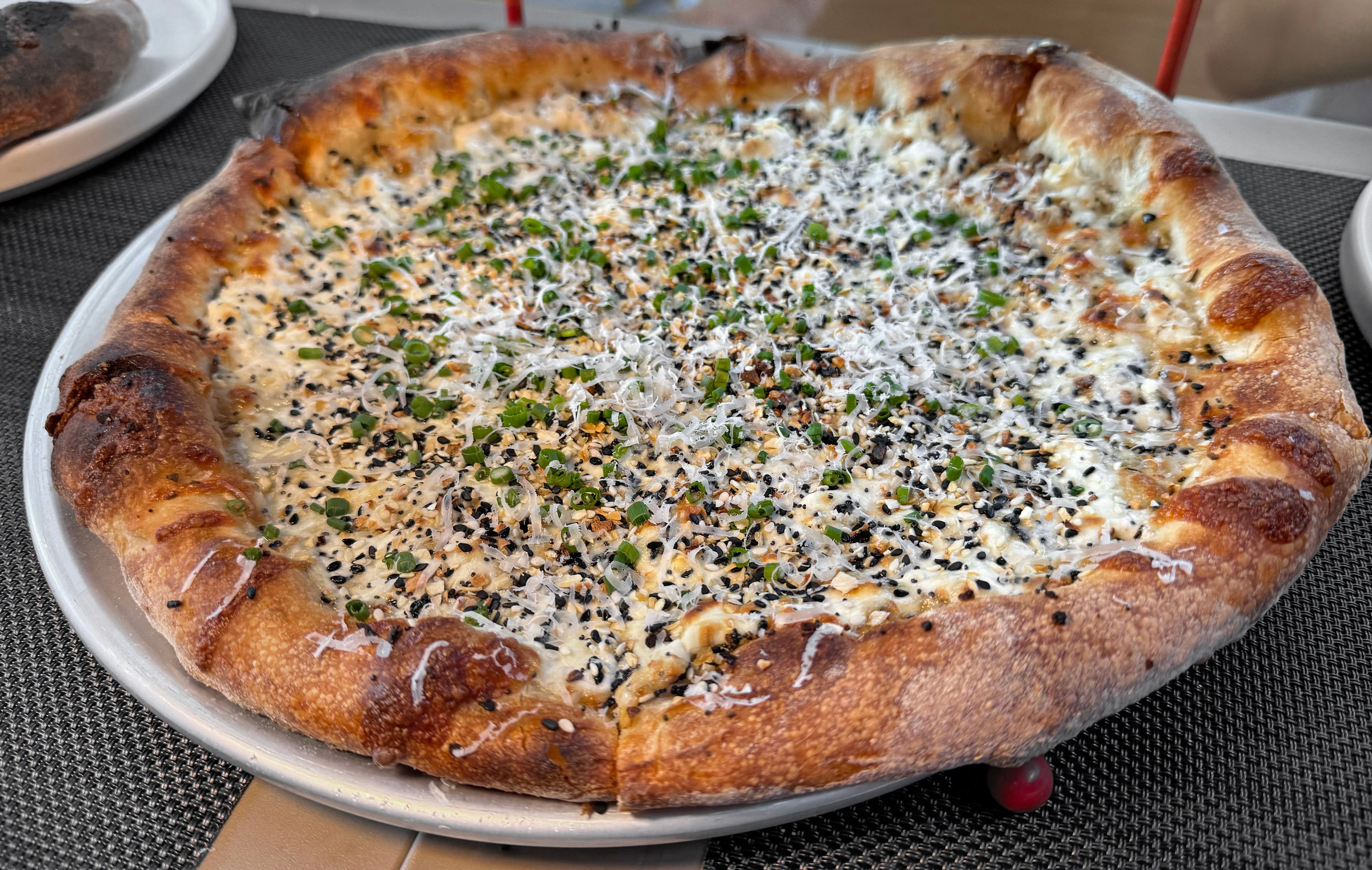 Successfully fusing two iconic New York City dishes is a magic trick more dazzling than any of the molecular gastronomy Wylie Dufresne showcased at wd~50. So when I learned that Chef Dufresne was attempting such a mashup at his new restaurant, Stretch Pizza, I was immediately out the door to try it. The Everything is an Everything Bagel reconstructed in pizza form, comprising Everything Bagel “spice,” cream cheese, chives, and Parmesan, sitting atop their light and elevated pizza dough. The dough is good enough to eat on its own, and the toppings on The Everything blend harmoniously, though the scallion flavor lingers a bit long. Like every other pizza there, it was thoughtful and delicious. However, the pizza's uniformly hot temperature sacrifices some of the textural nuances that exist only in the original bagel form. The cool, silky, cream cheese is the perfect foil for a properly toasted bagel’s warm, crispy, and chewy exterior, creating a textural interplay that doesn’t exist in pizza form. I’ll absolutely return to Stretch Pizza, and I’ll order The Everything again, but if I’m craving an Everything Bagel, I will probably just get an Everything Bagel.